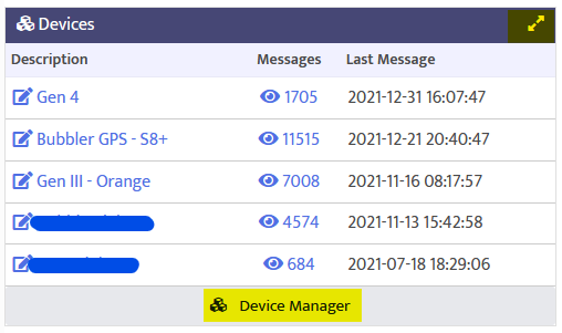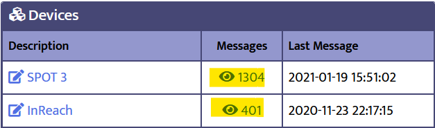 The Message Browser is an easy way to see your device's messages. There are two ways to access the browser. First, your devices are listed on the Dashboard. Click the number in the Messages column.