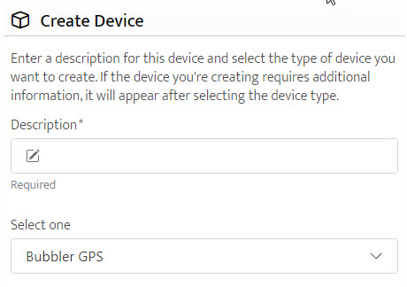 Choose the type of device from the Device Type list. If you're creating a device for a phone app, no more information is required. If you're creating a Garmin, SPOT or ZOLEO device, additional information is required and will appear below the list after choosing the device type.