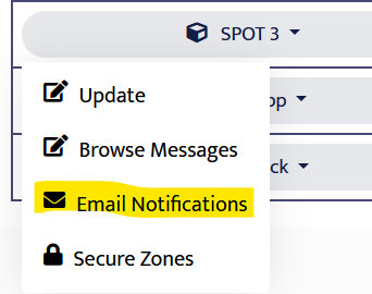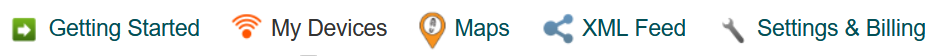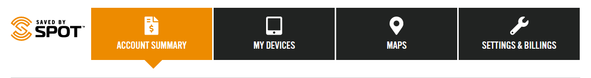 The first step is logging into your SPOT Account. After logging in you'll see these options toward the top of the page: