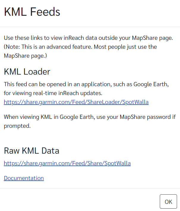 Copy the Raw KML Data link. If you set a password on your MapShare page, make note of it. When configuring your device in SpotWalla set the Raw KML Feed and Feed Password attributes using these values.