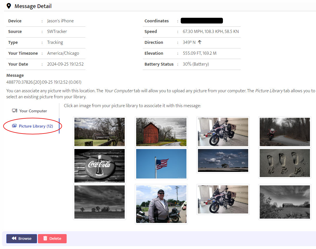 If you choose the Picture Library tab, you click any picture from your library to associate it with the location: