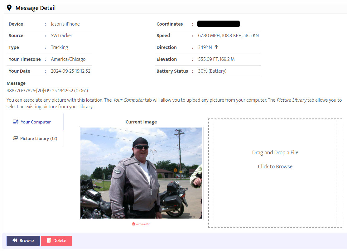 To remove/delete the message, click the Delete button. If you're trying to associate a picture with this location, refer to this help section:
