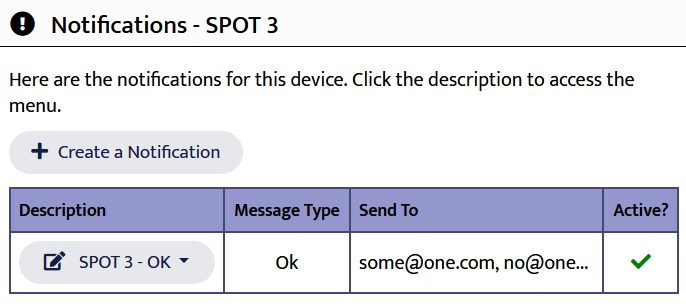 Email notifications allow you to send an email to any number of people when your device produces a chosen message type. Each device has its own notifications. You can manage them by going to the Device Manager. Find your device and click its name. Choose Email Notifications from the menu.