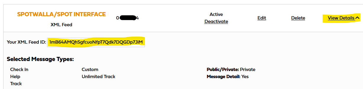 Now log into your SpotWalla account and update your device. Use the XML Feed ID and password in the fields highlighted below: