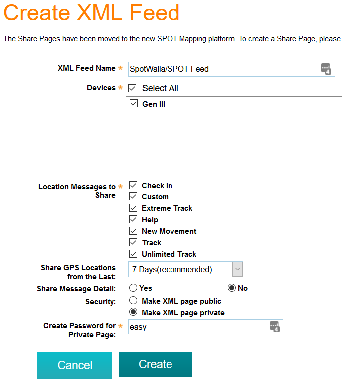 We recommand making your feed private and setting a password. Please do not use your SPOT Account password here. Something simple will do.