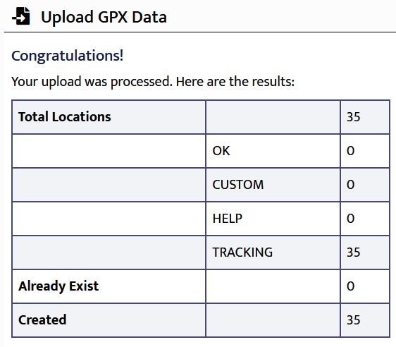 Click the Upload GPX Data button to start the upload process. You'll see: