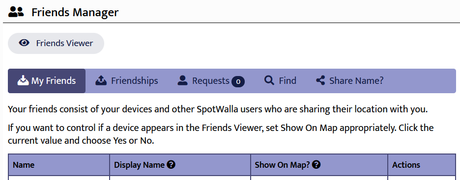 The Friends functionality in SpotWalla allows users to share their location with other users in a way that goes beyond trips, location pages or anything else. When you establish a friendship with a user you're giving them access to all location data from one of your devices. Secure zones don't apply. You cannot hide locations from a friend or limit the amount of detail they can see.