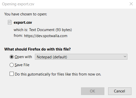 Choose the download type (CSV, KML or GPX) and click the Download button. Depending on your operating system, how it's configured and what options you've set, you will likely get an option to open or save the download file.