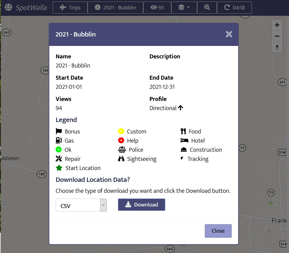 Enabling the download option for a trip will allow anyone viewing the trip to download all trip locations in various formats. Only enable this option when necessary.