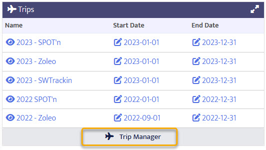 Creating or updating trips start in the Trip Manager. If you're logged in, you can get to the Trip Manager from Your Dashboard or from the user menu at the top of the page.