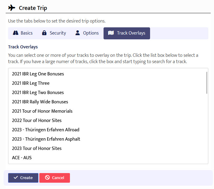 If you have tracks defined in your account, you can overlay one or more on your trip.