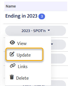 To update a trip, click its name and select Update from the menu.